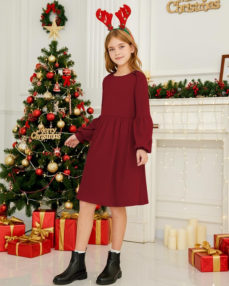 تصميم الموضة: فستان بلوفر للفتيات بأكمام طويلة يتميز برقبة دائرية، وأكمام فانوس، وتصميم على شكل حرف A. لطيف ومريح. فساتين البنات لدينا تناسب جميع المقاسات، بينما تضيف الأكمام الطويلة الفانوس الجاذبية والأناقة إلى أي ملابس.