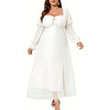 فستان نسائي رسمي بمقاسات كبيرة - تصميمان للرقبة، خصر ضيق، فتحة وأكمام طويلة شفافة in Kuwait فستان نسائي رسمي بمقاسات كبيرة - تصميمان للرقبة، خصر ضيق، فتحة وأكمام طويلة شفافة in Kuwait