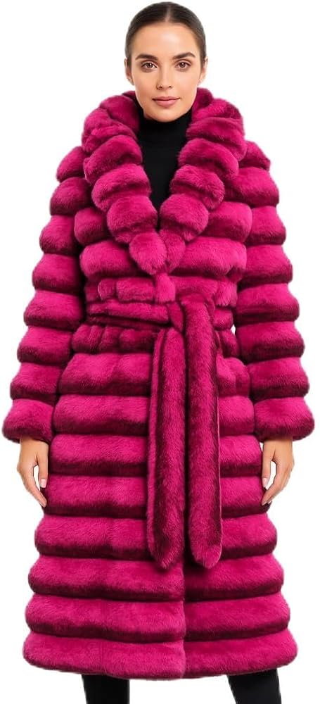 DLNYC - سترة طويلة فاخرة من الفرو الصناعي شينشيلا للنساء - نمط منتفخ طويل، ملابس خارجية مصممة in Kuwait