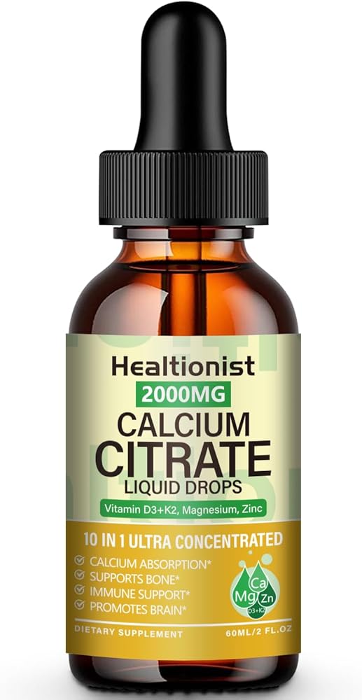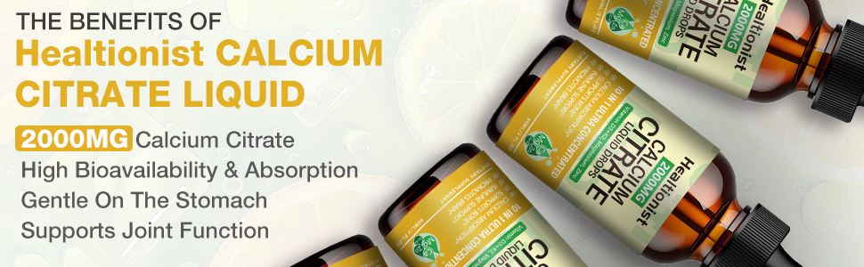 قطرات سائل سيترات الكالسيوم ذات القوة الإضافية: مكملات قطرات سائل سيترات الكالسيوم 2000 مجم من Healtionist تختلف عن مكملات كربونات الكالسيوم التقليدية الأخرى. يمتص جسم الإنسان سترات الكالسيوم بسهولة أكبر ولا يتطلب امتصاصه بيئة حمضية. ولذلك فإن وقت تناوله أيضًا مرن نسبيًا، مما يجعله مناسبًا جدًا للأشخاص الذين يتناولونه على معدة فارغة أو الذين يعانون من انخفاض حمض المعدة.