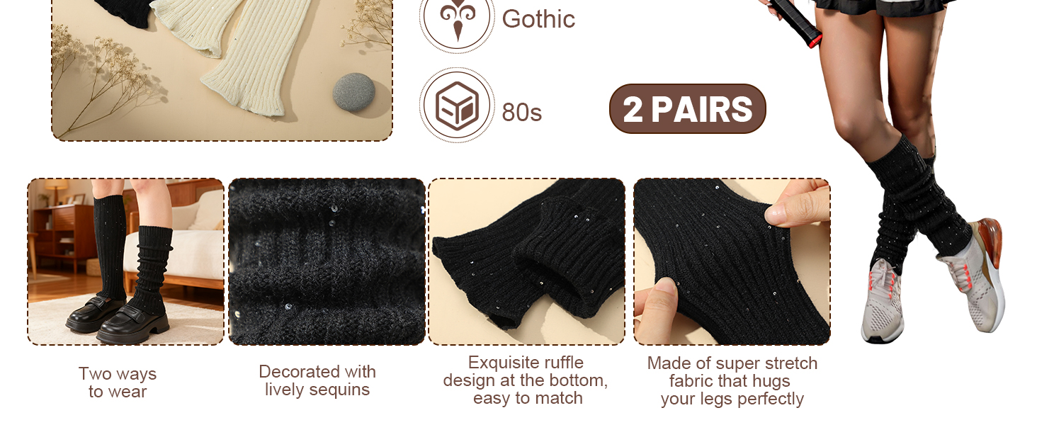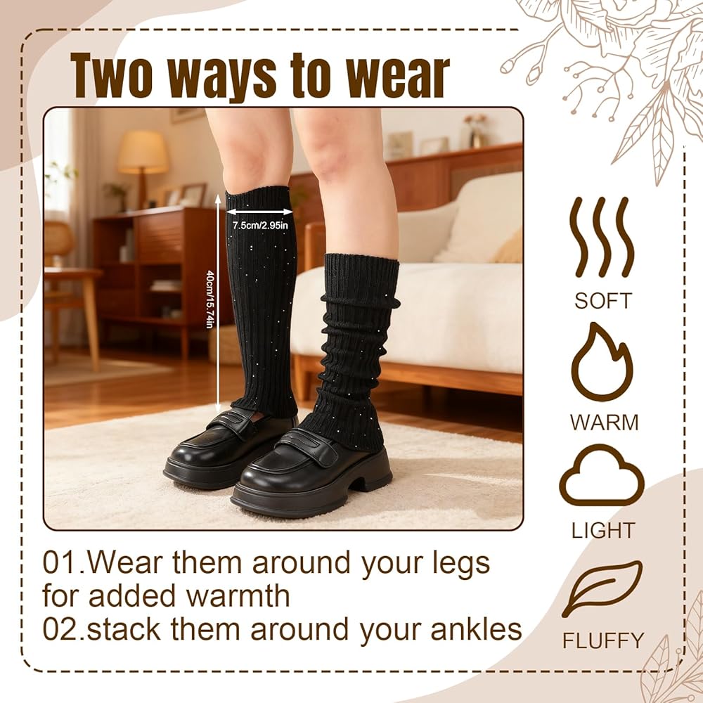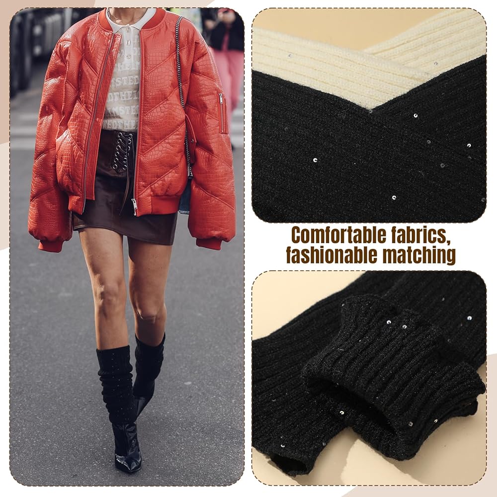 تتضمن الحزمة: سوف تحصل على زوج واحد من دفايات الساق السوداء وزوج واحد من تدفئة الساق باللون البيج مع زخرفة مطرزة. لن تحافظ دفايات الساق هذه على دفء ساقيك فحسب، بل ستضيف أيضًا لمسة من الأناقة إلى مظهرك