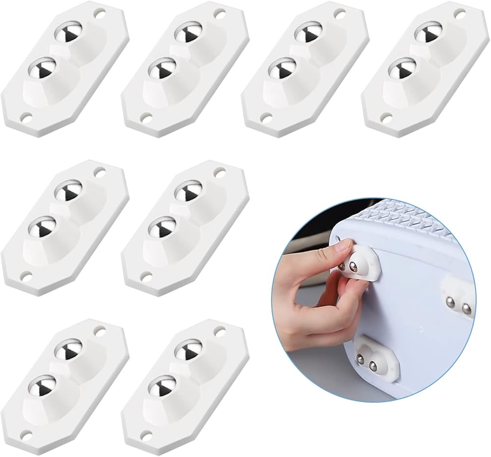 [سوف تحصل على] 8 عجلات عالمية بيضاء مزدوجة الخرز، كل منها بسعة تحميل قصوى تصل إلى 33 رطلاً/15 كجم، والتي يمكنها بسهولة تحريك الأشياء الثقيلة دون إجهاد.
