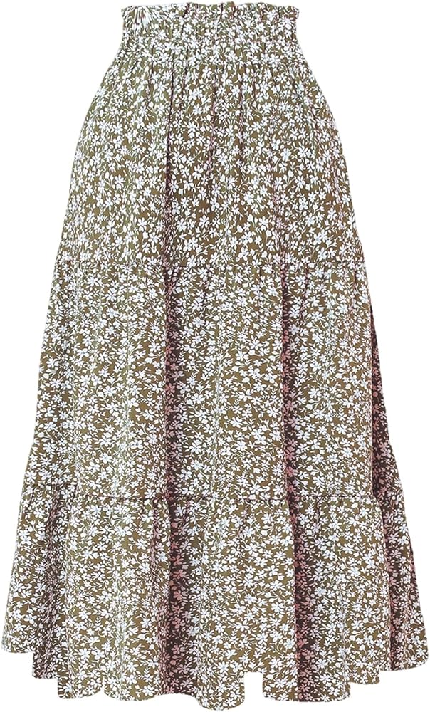 • Features: Floral print midi skirt for women, elastic waistband for a snug fit, high waisted, ruffle hem, a-line silhouette, elegant flowy skirt