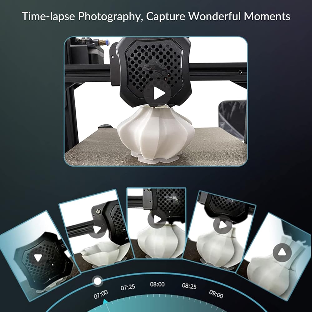 [التصوير الفوتوغرافي الفاصل الزمني والتقاط لحظات رائعة] - وظيفة التصوير الفوتوغرافي الفاصل الزمني ، تلتقط مشاهد رائعة الطباعة ثلاثية الأبعاد التي لا يمكن اكتشافها بالعين المجردة، والنسخ الاحتياطي تلقائياً إلى السحابة، حتى تتمكن من مشاهدة الفيديو الفاصل الزمني عبر الإنترنت بواسطة Creality Cloud.