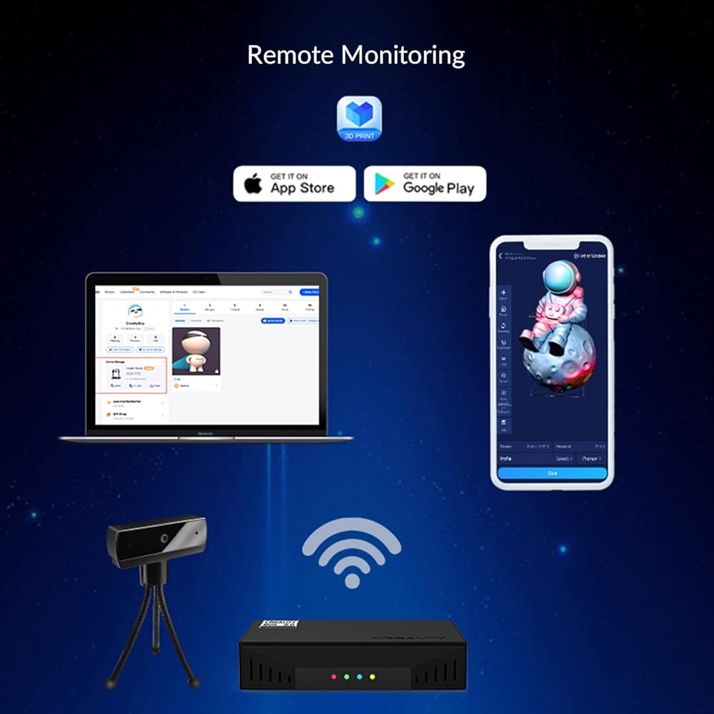[المراقبة عن بعد] - مجموعة ذكية للإبداع تمكنك من المراقبة عن بعد والطباعة في الوقت الحقيقي. تحكم في عمل الطابعة وتحقق من حالة الطباعة في الوقت الفعلي على Creality Clou، مما يجعل الطباعة ثلاثية الأبعاد أكثر ذكاء.