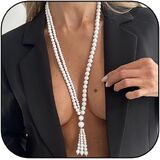 قلادة طويلة مطرزة للنساء من الأكريليك بخرز دائري طويل على شكل حرف Y وقلادة ذات طبقات مكتنزة مجوهرات بوهو عصرية in Kuwait