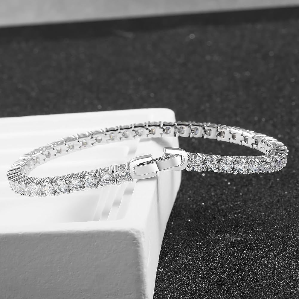 سوار تنس زركونيا مكعب 3 مم للنساء والرجال، سوار تنس كلاسيكي مقاس معصم صغير 6-7.5 بوصة