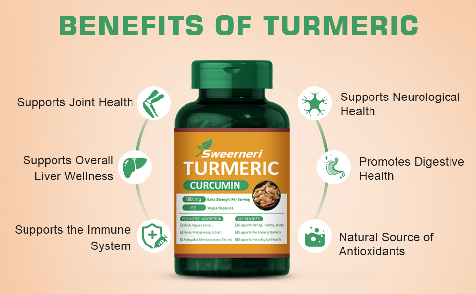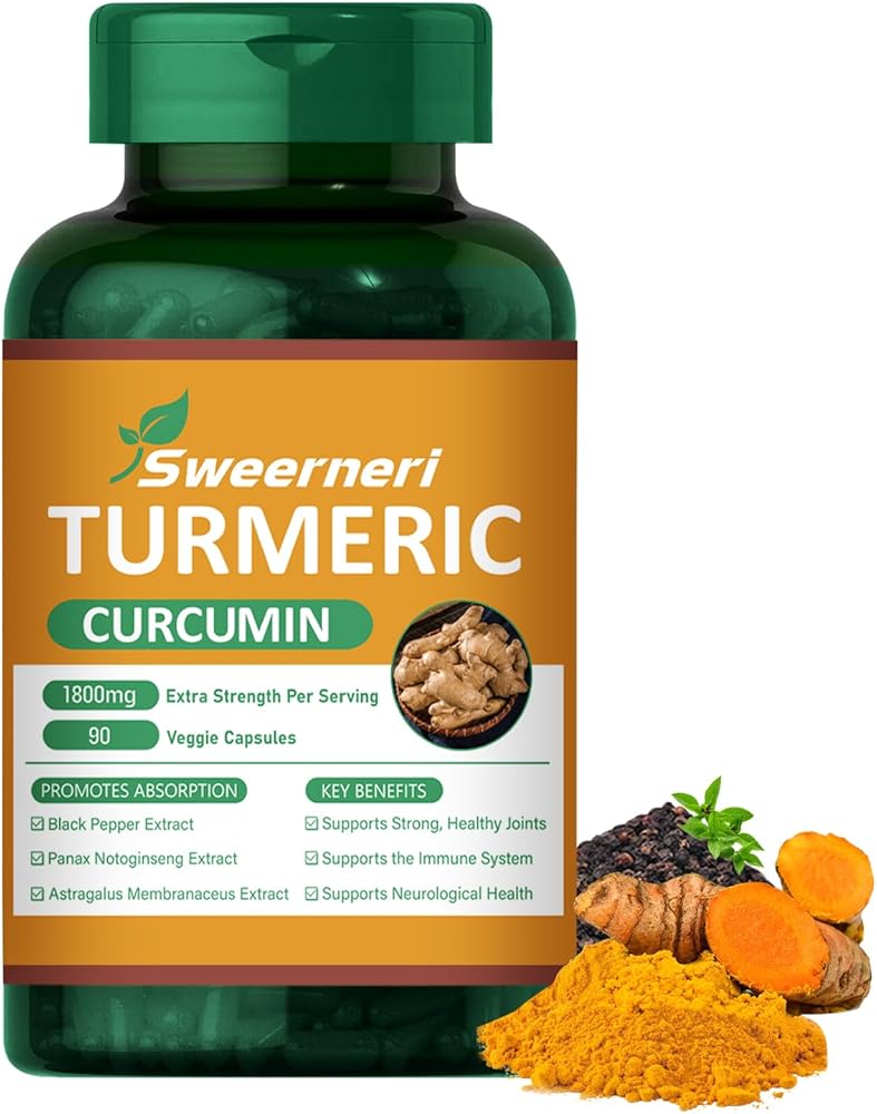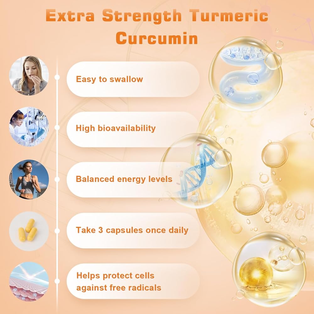 【1800 مجم من الكركمين الكركم مع 95% من الكركمينات】 تركيبة عالية القوة تتميز بجذور الكركم العضوي و95% من الكركمينات القياسية لدعم راحة المفاصل وصحة الجهاز الهضمي وتوازن المناعة في كل جرعة يومية 1800 مجم.