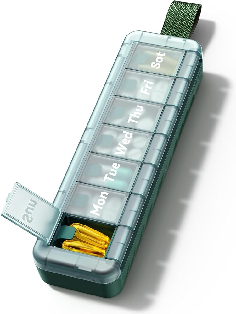 【محمول مع مقبض حمل】تم تصميم هذا المقبض المتين والمعزز للاستخدام اليومي والسفر، مما يمنحك راحة البال عند حمله. تضمن قبضته الآمنة عدم انزلاقه من يدك، مما يساعدك على الالتزام بنظام الدواء اليومي.