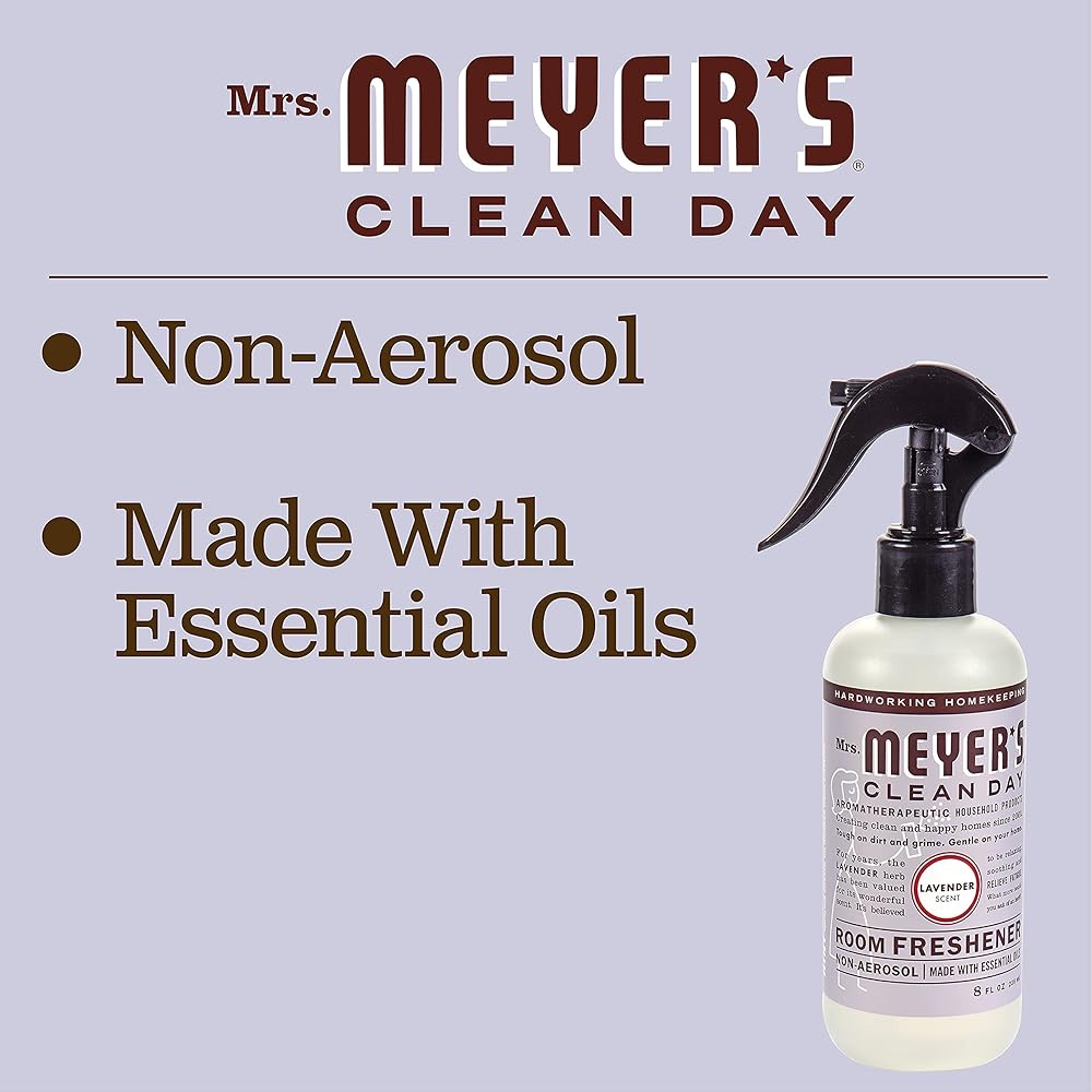 Mrs. Meyer's Clean Day Room Fresheners are specifically made to quickly freshen any room, while also providing a special, singular scent for your home. Mint scented room freshener has a cool and crisp scent. Whenever you have the chance to bring such an inviting, refreshing and energizing scent into your home, take it! The non-aerosol bottle quickly freshens any room for instant fragrance.This room freshener is made with essential oils and other thoughtfully chosen ingredients. Perfect for when you need to add a little garden-inspired fragrance to your home between cleaning days