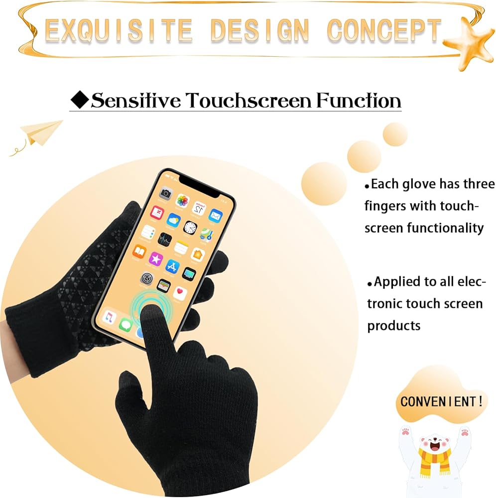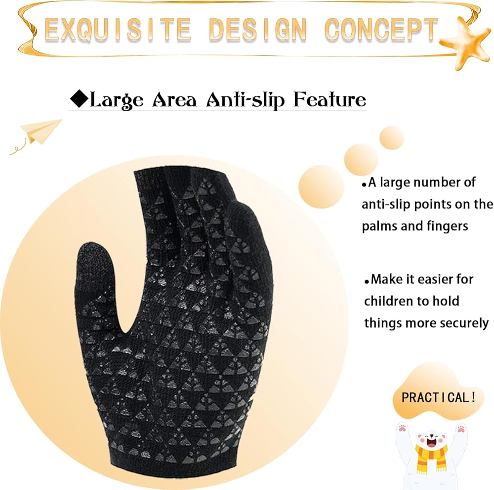 【راحة شاشة اللمس】- تتميز قفازات شاشة اللمس الخاصة بنا بتصميم فريد وعملي لـ 3 وظائف شاشة تعمل باللمس (الإبهام، السبابة، الإصبع الأوسط)، مما يضمن أن الأطفال يمكنهم استخدام هواتفهم المحمولة والأجهزة اللوحية لالتقاط الصور وإرسال الرسائل وإجراء المكالمات والدراسة دون خلع القفازات.