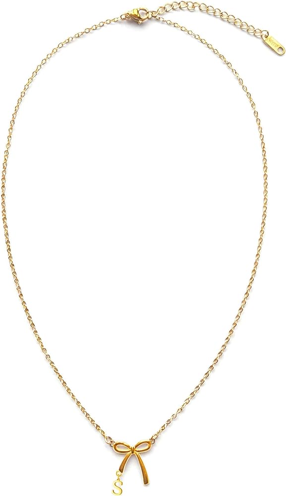 قلادة للنساء: أضف لمسة فريدة إلى أسلوب حياتك مع قلادة القوس من رومجي. تتميز هذه السلسلة بقلادة على شكل فيونكة حديثة وعصرية وقلادة صغيرة على شكل حرف تتناسب مع كل شيء تقريبًا. يتم تثبيتها على قلادة قابلة للتعديل، مما يسمح لك باختيار طول القلادة بنفسك