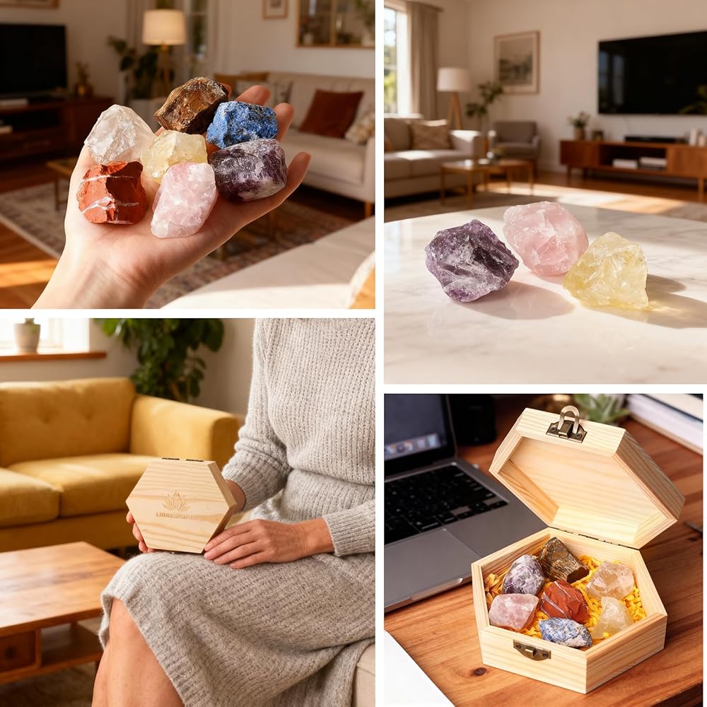 بلورات علاجية طبيعية 100% - مصدرها مناجم متميزة في البرازيل ومدغشقر، تحمل هذه البلورات الخام قوة عناصر الأرض النقية. تم اختيار كل حجر بعناية لوضوحه وطاقته، ويتم تنظيفه وشحنه بقوة قبل الشحن - وهو جاهز لدعم رحلة الشفاء الخاصة بك.
