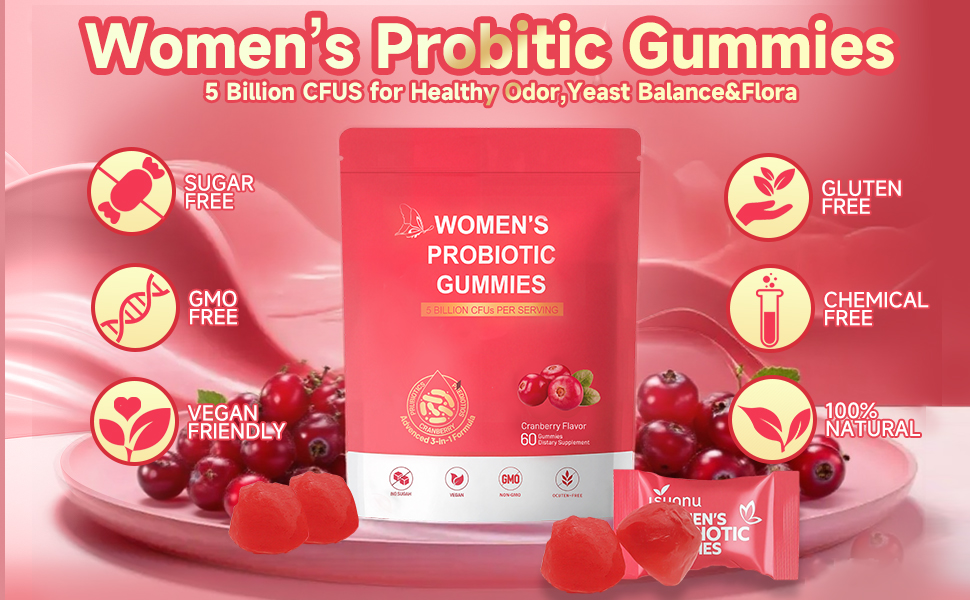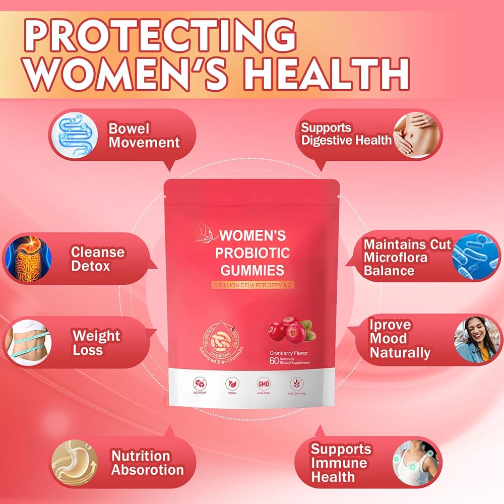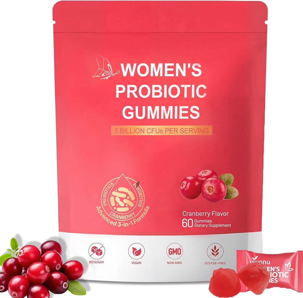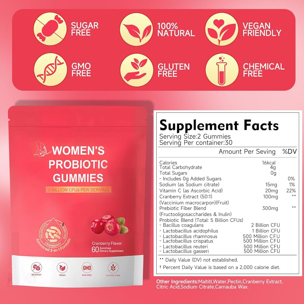 - علكات البروبيوتيك للسيدات - تحتوي على البروبيوتيك والتوت البري وفيتامين C لدعم صحة المرأة وتوازن درجة الحموضة