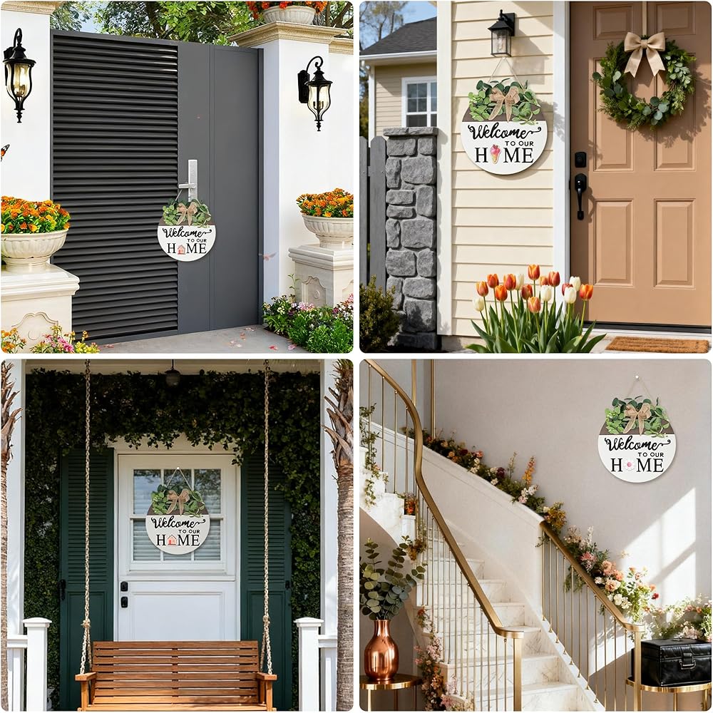 【استخدام متعدد السيناريوهات】: علامة الترحيب الخارجية للشرفة الأمامية ستجعل بابك أكثر أناقة وسحرًا. إنه مثالي للتعليق على باب الشرفة الأمامي، أو الباب الخلفي، أو المدخل، أو جدار الرف، أو الاستناد على الرف وغيرها من الأماكن في منزلك. يمكن استخدامها لتزيين غرفة المعيشة، غرفة النوم، المطبخ، المزرعة، إلخ.
