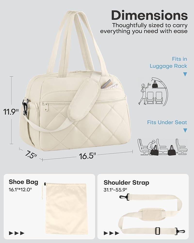 قم بتنظيم جميع أغراضك الأساسية: بأبعاد كبيرة تبلغ 16.5 بوصة × 7.5 بوصة × 11.9 بوصة، تم تصميم حقيبة السفر هذه بعناية مع مساحات تخزين متعددة على جميع الجوانب للحفاظ على الملابس والمناشف والإكسسوارات منظمة بشكل أنيق. يضمن تصميمها المخطط جيدًا الوصول السريع إلى كل ما تحتاجه، مما يجعل التعبئة والتفريغ والاستخدام اليومي بلا مجهود.