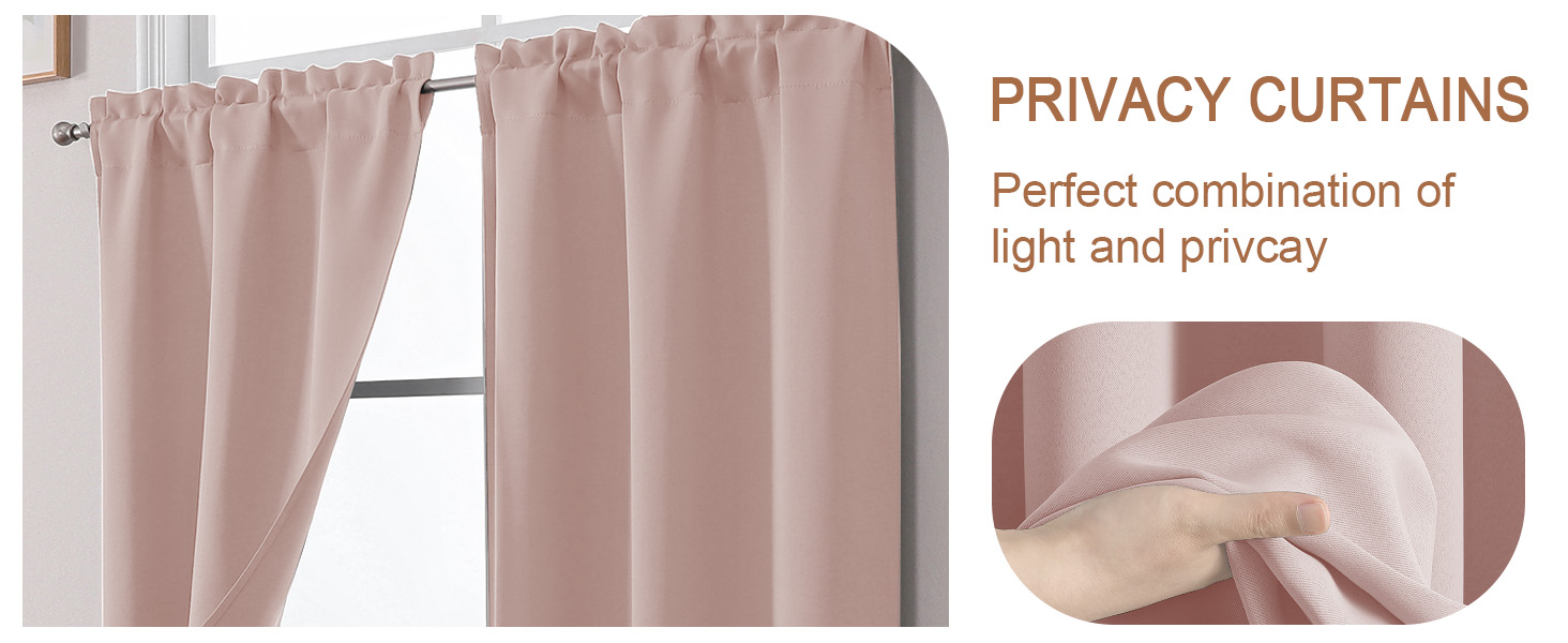 High Quality Fabric: Durable yet softly textured, these short curtains for windows have triple-weave construction incorporating a inner black yarn layer that acts as a built-in light barrier, filtering glare and safeguarding your privacy. With the same elegant color on both sides, it offers a refined look that enhances the elegance of any room, ensuring your space is both tranquil and stylish