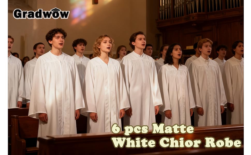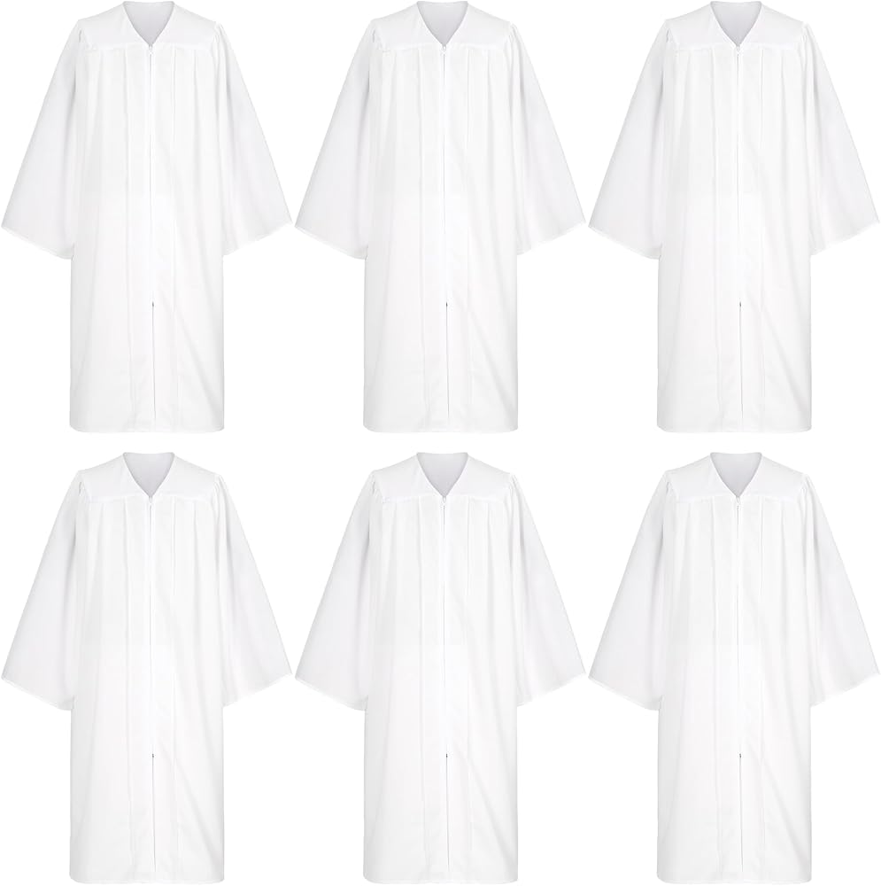 عبوة من 6 قطع: تحتوي هذه المجموعة على 6 فساتين تخرج بيضاء متطابقة، مما يجعلها مثالية لحفلات المعمودية أو عروض الجوقة أو احتفالات التخرج. تضمن هذه الحزمة المريحة مظهرًا موحدًا ومتماسكًا لجميع المشاركين