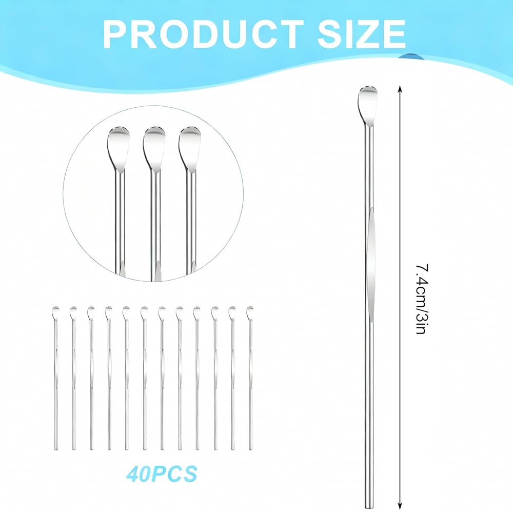 40 قطعة ملعقة الأذن الفولاذ المقاوم للصدأ الأذن الشمع مغرفة 3 ''قابلة لإعادة الاستخدام خلال أذني الأذن مكشطة معدنية الأذن نظافة آمنة أدوات إزالة شمع الأذن