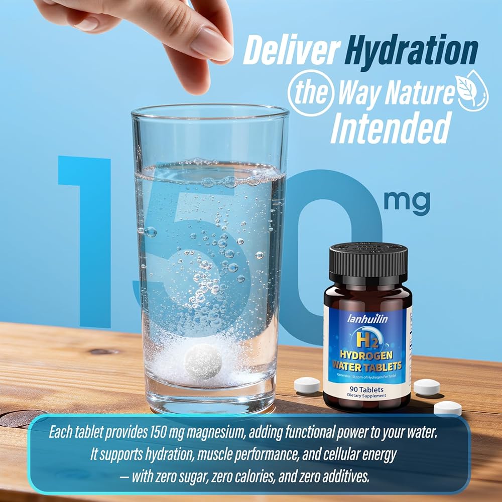 أقراص ماء الهيدروجين مع 150 ملغ من المغنيسيوم، 10 جزء في المليون H2 أقراص هيدروجين لمياه الشرب، غنية بمضادات الأكسدة، تدعم الصحة الخلوية، والتعافي، والوظيفة الإدراكية للمناعة والدماغ (90 وجبة)
