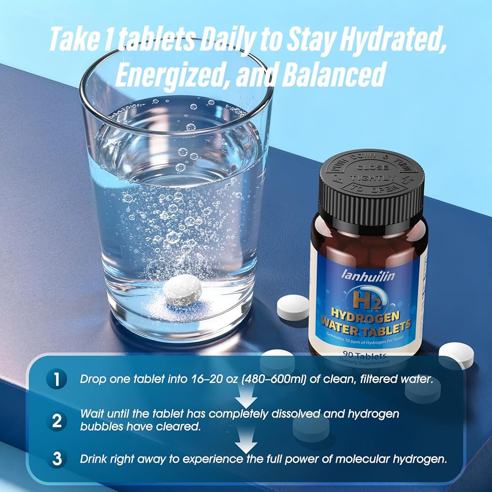 كيفية تناوله وجودته الموثوقة: يقوم البالغون، كمكمل غذائي، بإذابة قرص واحد في 16 أونصة. (480 مل) من الماء ويشرب على الفور – لا تبتلع مباشرة. يتم تصنيع أقراص الهيدروجين H2 في منشآت معتمدة من GMP، وتفي بمعايير الجودة العالمية. مصمم لأولئك الذين يقدرون النقاء، فهو يوفر طريقة نقية وآمنة وفعالة لدعم الترطيب اليومي والحماية الخلوية.