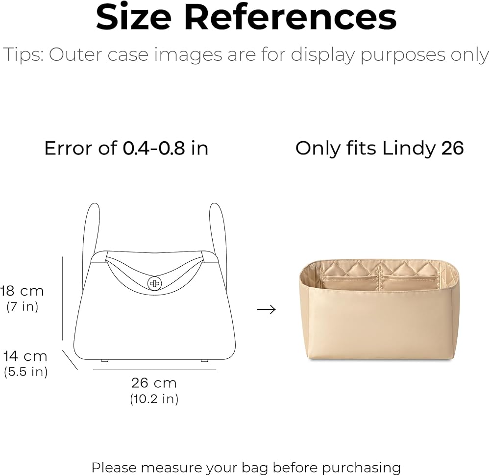 【Tailored for Lindy26 Handbag】Crafted from 6,000+bags' DNA since 2018 (yes, we measured them all!). Proven reliability for handbags and purses, this purse organizer insert clicks into your bag like puzzle pieces. Exact Fit Required: 10.2x7x5.5" (Tolerance <1"). Note: We do NOT support any similar bags or unauthorized versions, Confirm Before Checkout Please.