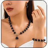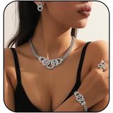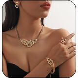 This stunning gold rhinestone jewelry set for women features a chunky design that includes a necklace, bracelet, earrings, and a ring, making it the good accessory for any occasion.