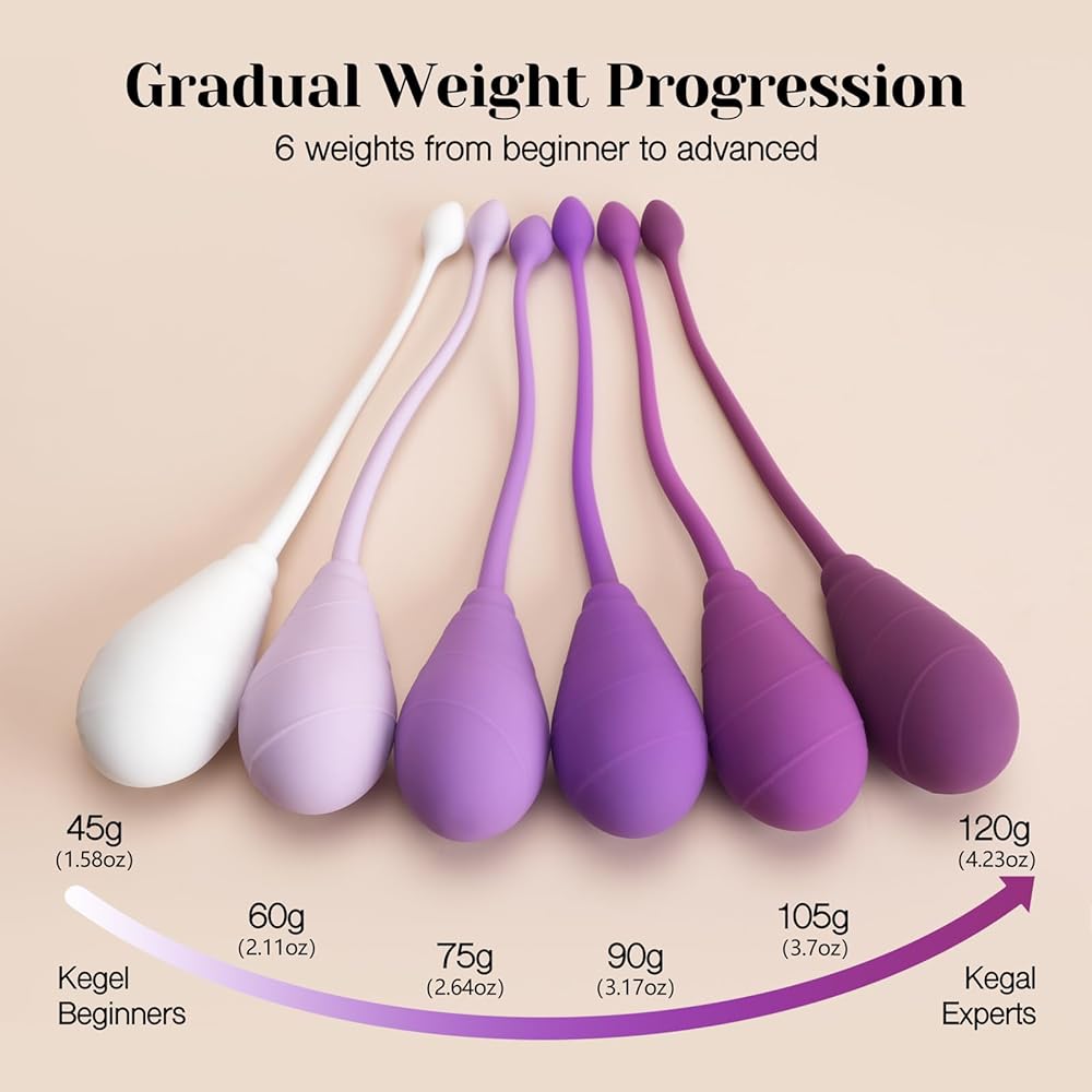 أوزان كيجل التقدمية (45-120 جم) - ستة أوزان متدرجة (45 / 60 / 75 / 90 / 105 / 120 جم) تتيح لك تطوير روتين كيجل الخاص بك خطوة بخطوة - مثالية كتمرين لقاع الحوض للمبتدئين من خلال المستخدمين المتقدمين