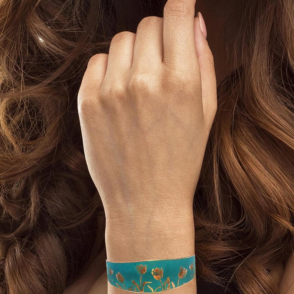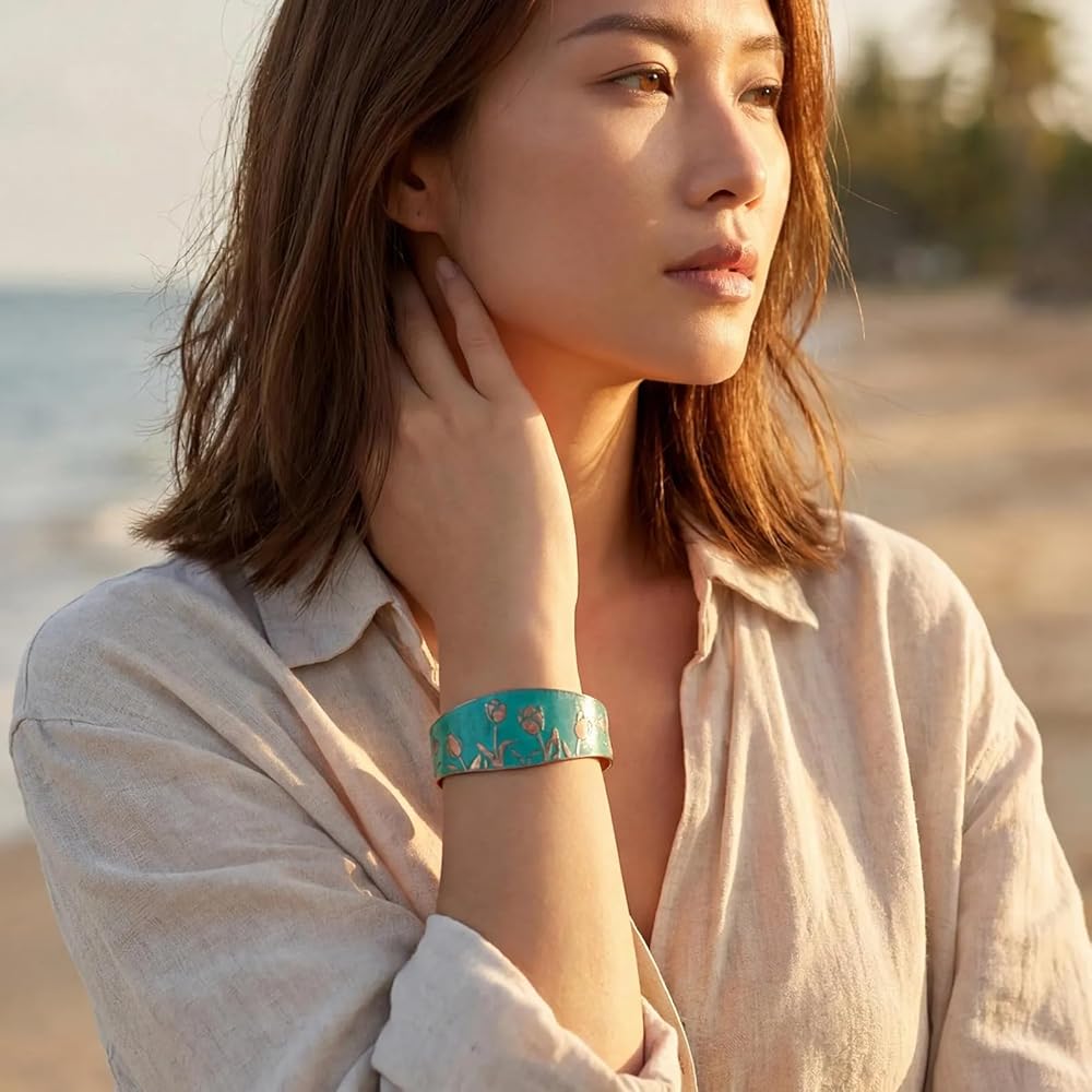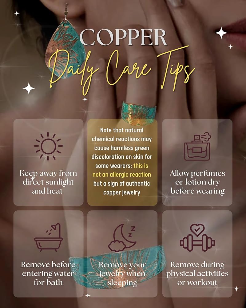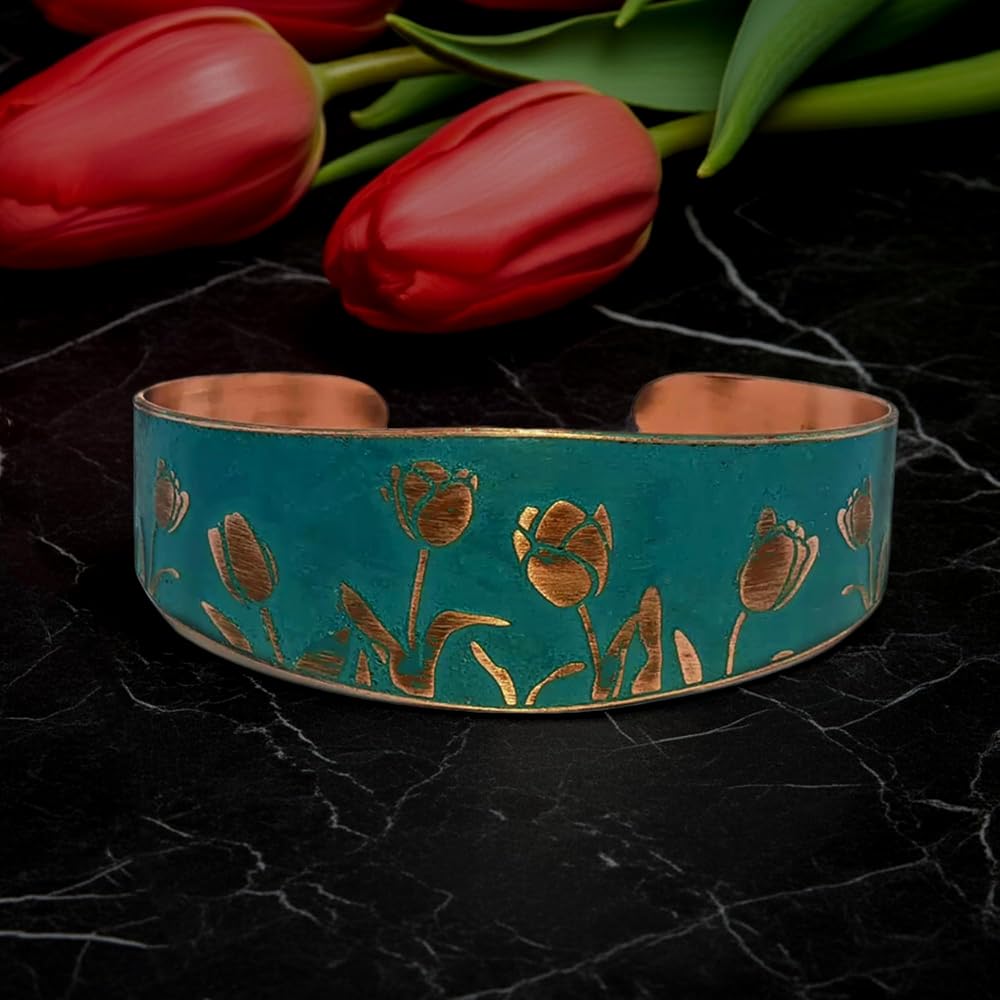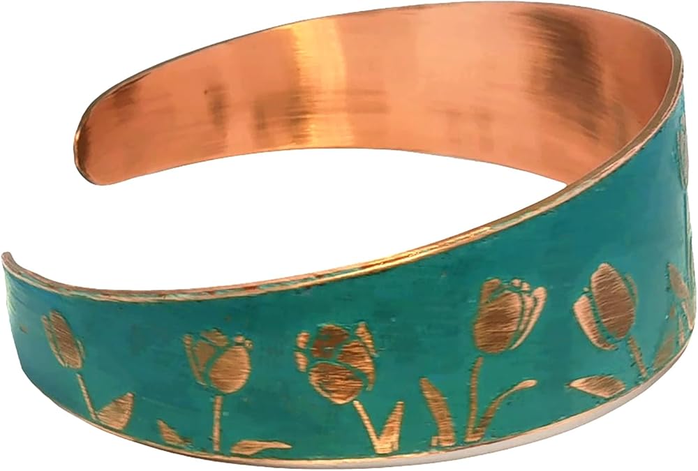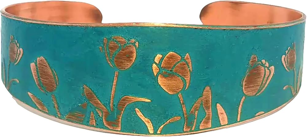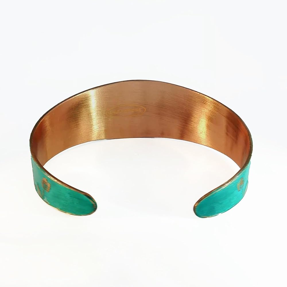 Stunning detail on these beautiful rustic patina copper cuffs. Treated with a rustic teal verdigris patina for that beautiful weathered look. 100% copper, nickel & lead-free. Sealed with triple baked on lacquer which will protect the cuff from oxidation, providing long-lasting wear & durability. To care for your luxury cuff, avoid immersing it in water or exposing it to harsh chemicals. With proper maintenance, it will maintain its luxurious look for a long time.