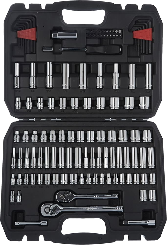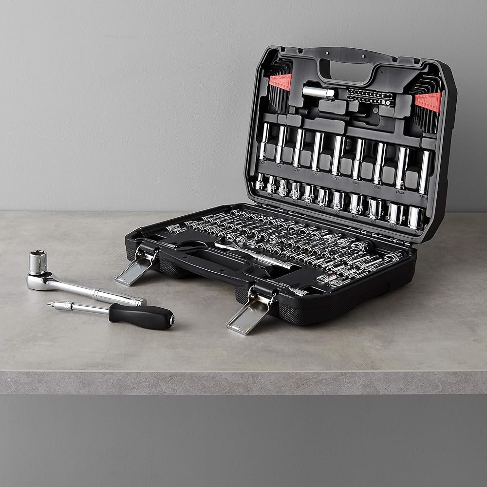 مجموعة أدوات مقابس ميكانيكية من أمازون بيسيكس مع حقيبة، 123 قطعة