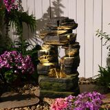 نافورة مياه تشبه الخشب بارتفاع 40.6 بوصة داخلية وخارجية، شلال طبيعي متدرج من 5 طبقات مع ضوء LED للفناء والشرفة والحديقة وديكور المنزل والخشب المتوسط in Kuwait