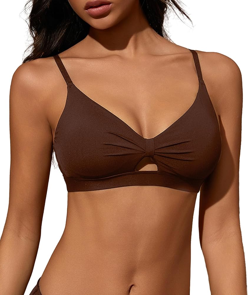 Womens Wireless Sports Bra - Padded Low Impact Spaghetti Thin Strap Workout Yoga Top The Bow Hollowed-out Design