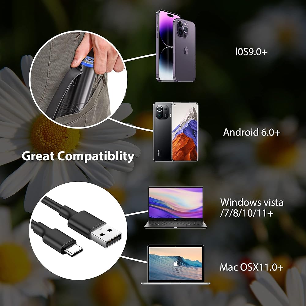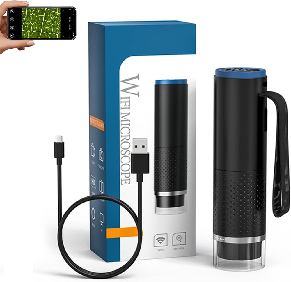🔬🌹【مجهر قابل لإعادة الشحن】يستغرق الشحن بالكامل 1.5 ساعة، ويمكنك استخدامه لمدة 1.5 ساعة. بعد ذلك، يمكنك الاستمتاع بمجهر الجيب الصغير المحمول أثناء التنزه سيرًا على الأقدام في الطبيعة أو في المنزل. ملاحظة: إذا لم تتمكن من الوصول إلى التطبيق على هاتفك بعد الاتصال بشبكة WiFi، فيرجى الخروج من البرنامج ومحاولة إعادة فتحه.