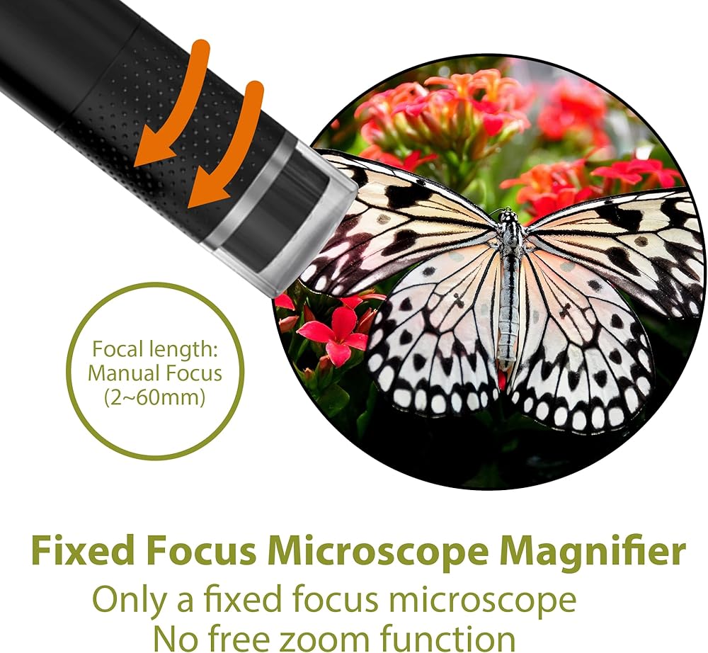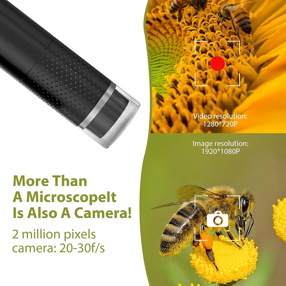 🔬🌷【صور 1080 بكسل وفيديو 720 بكسل】2 مليون بكسل، جودة صورة وفيديو عالية الوضوح، دقة صورة 1920x1080 ودقة فيديو 1280x720. تضمن مصابيح LED المدمجة الثمانية القابلة للتعديل أن تكون ألوان الصورة واضحة ومشرقة وواقعية.