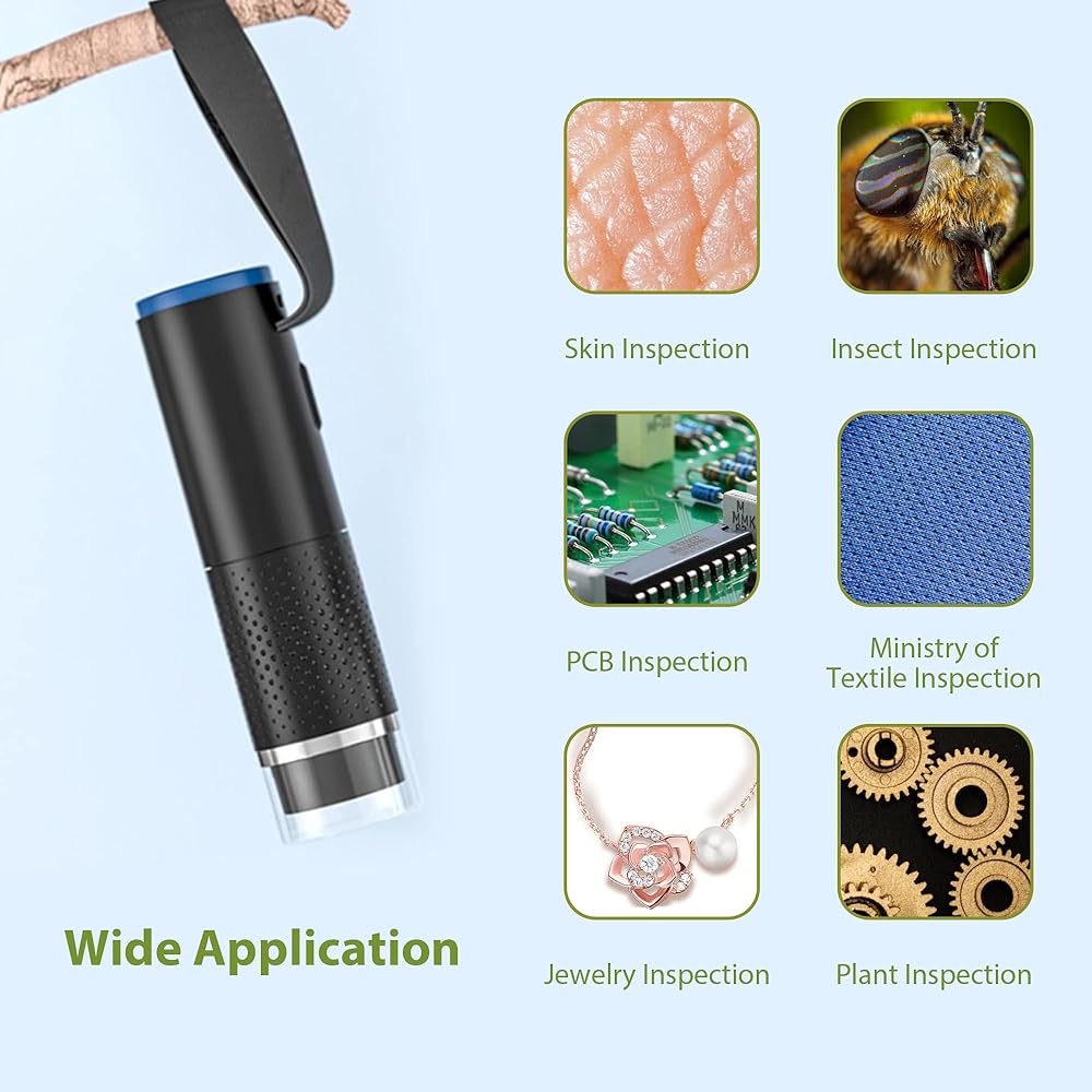 🔬🌼أداة مثيرة للاهتمام: هذا المجهر اللاسلكي هو أداة مفيدة للغاية ولكنها غير مناسبة لعلماء الأحياء المحترفين الجادين. إنه بالتأكيد شيء مثير للاهتمام للغاية ومناسب للآباء والكبار والمعلمين والطلاب والأطفال وهواة الجمع والمختبرين وموظفي الإصلاح الإلكتروني وأي شخص مهتم باستكشاف جلد النبات والشعر وفروة الرأس والعالم الصغير. كما أنها مناسبة لحام SMD وجلسات المشاهدة الطويلة، مثل فحص لوحات الدوائر الإلكترونية والعملات المعدنية والطوابع وما إلى ذلك.
