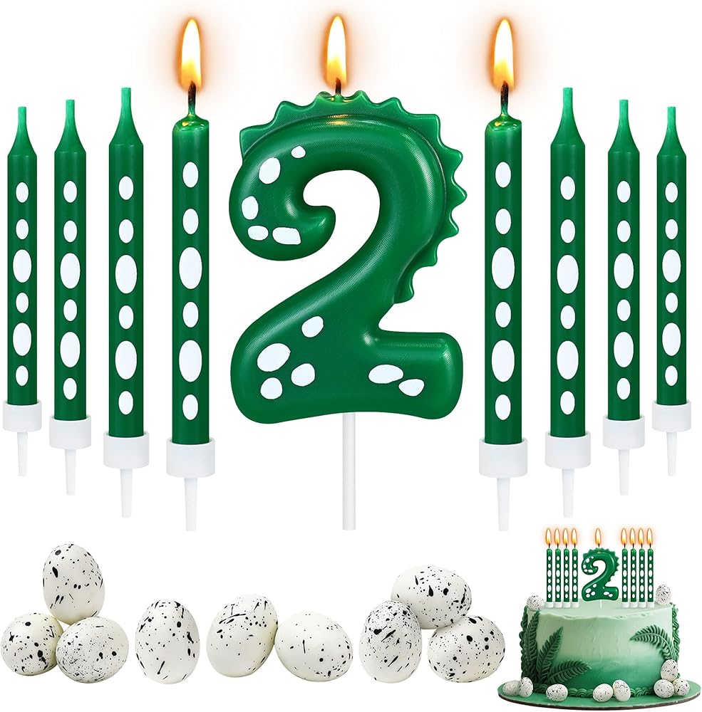 【مجموعة شموع على شكل ديناصور】مجموعة شموع عيد الميلاد الثلاثة لطيفة وممتعة. شموع عيد ميلاد الديناصورات مطبوعة باللونين الأخضر والأبيض، بألوان نابضة بالحياة ونابضة بالحياة مثالية لحفلات أعياد ميلاد الأطفال.