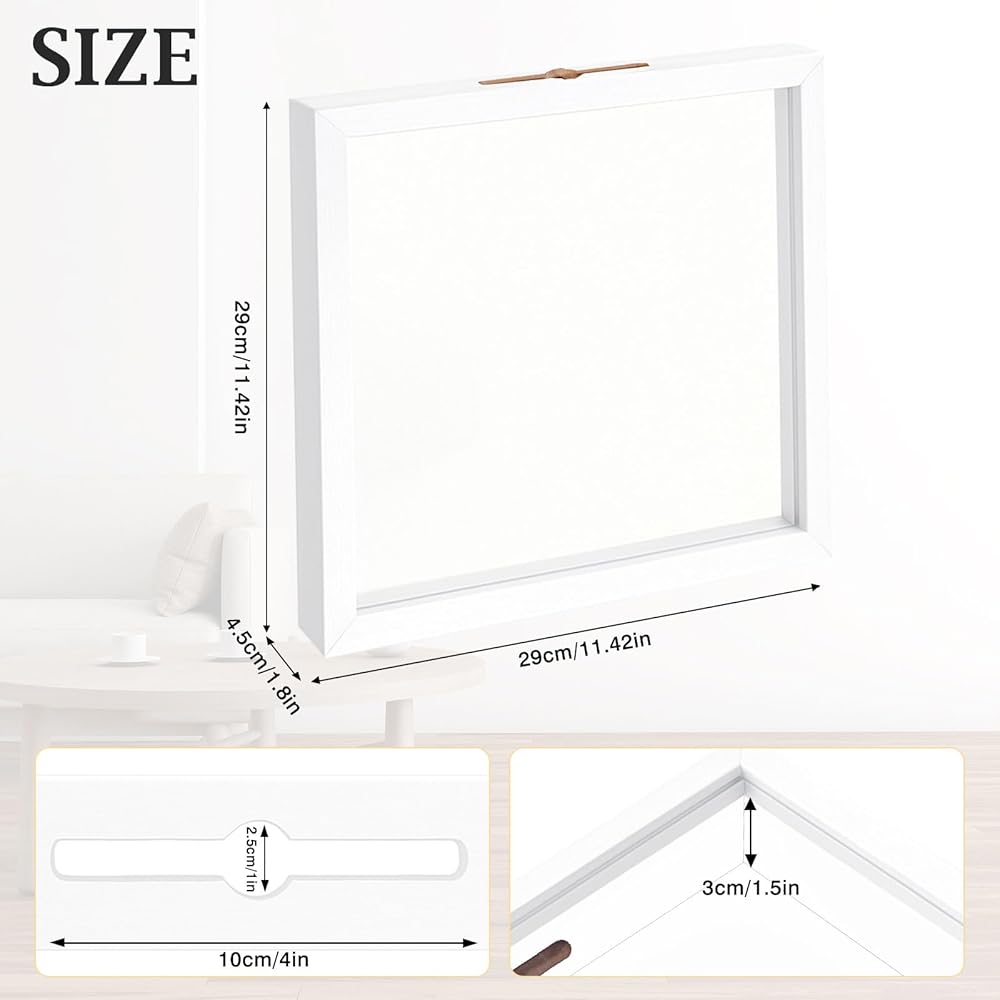 【Spacious & Practical Design】Shadow Box Frame Memory Box: 12x12 inches with 1.5-inch depth (deeper than standard boxes) . Top slot: 4" x 0.4" for easy additions. Expertly crafted to look stunning empty or full, it grows more meaningful as your collection does.