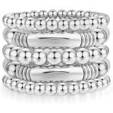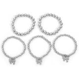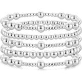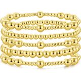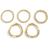 Gold Beaded Elastic Bracelets: Set of 5 gold beaded bracelets; features beads of varying sizes for fashionable layering; approximately 7 inches long and elastic; fits various wrist sizes comfortably