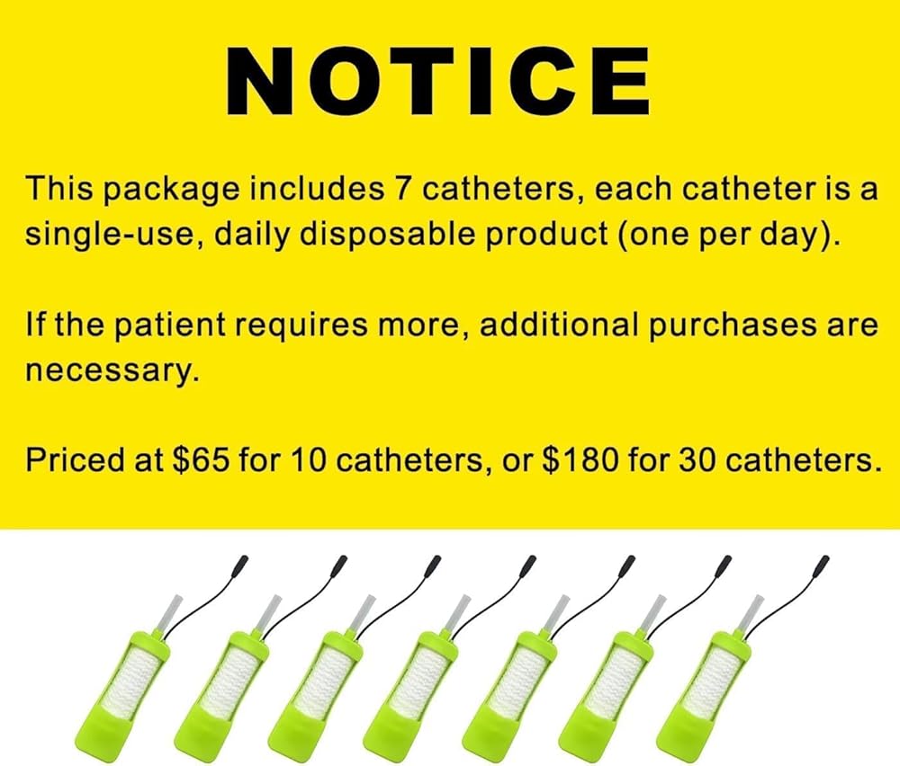 • قلل من نفقات المواد الاستهلاكية ووفر بسهولة على المواد الاستهلاكية المستقبلية من خلال أجهزتنا الفعالة والمتينة. تحتوي العبوة على 7 قطع قسطرة خارجية خضراء اللون، بطارية مدمجة.