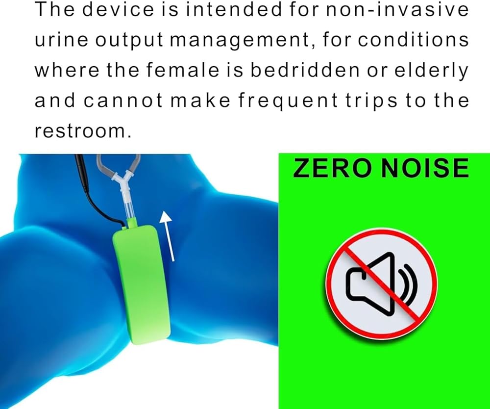 • تم تصميم الجهاز لإدارة إخراج البول بطريقة غير جراحية، في الحالات التي تكون فيها الأنثى طريحة الفراش أو مسنة ولا يمكنها القيام برحلات متكررة إلى الحمام.