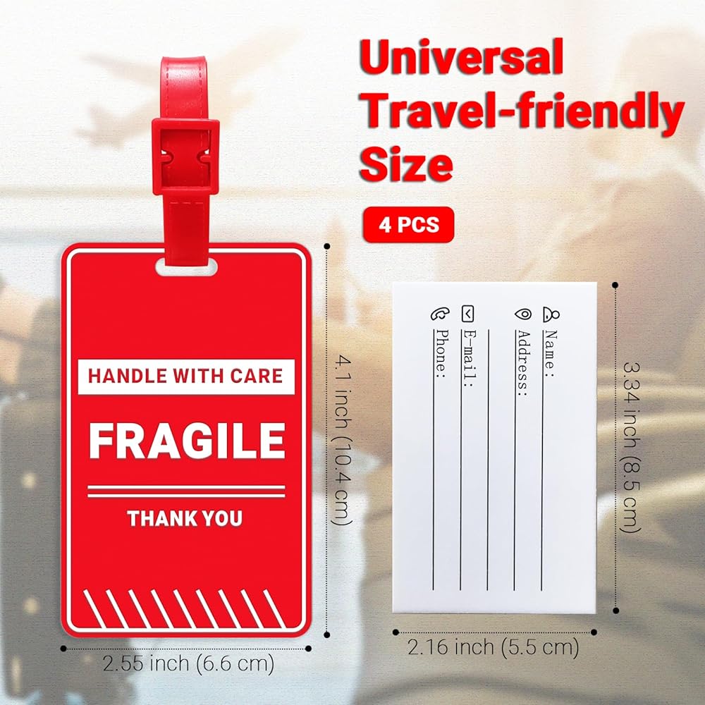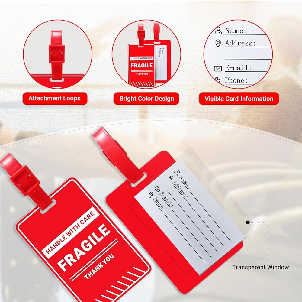 سهولة التعرف: تم تصميم بطاقات الأمتعة الخاصة بنا بنظام ألوان أحمر وأبيض جريء، وتبرز على الفور، مما يجعل من السهل تحديد أمتعتك في أي مكان. تعمل الألوان عالية التباين كمعرف مرئي، مما يساعدك على تحديد موقع العناصر الخاصة بك بسرعة في محطات المطار المزدحمة أو محطات القطار المزدحمة.