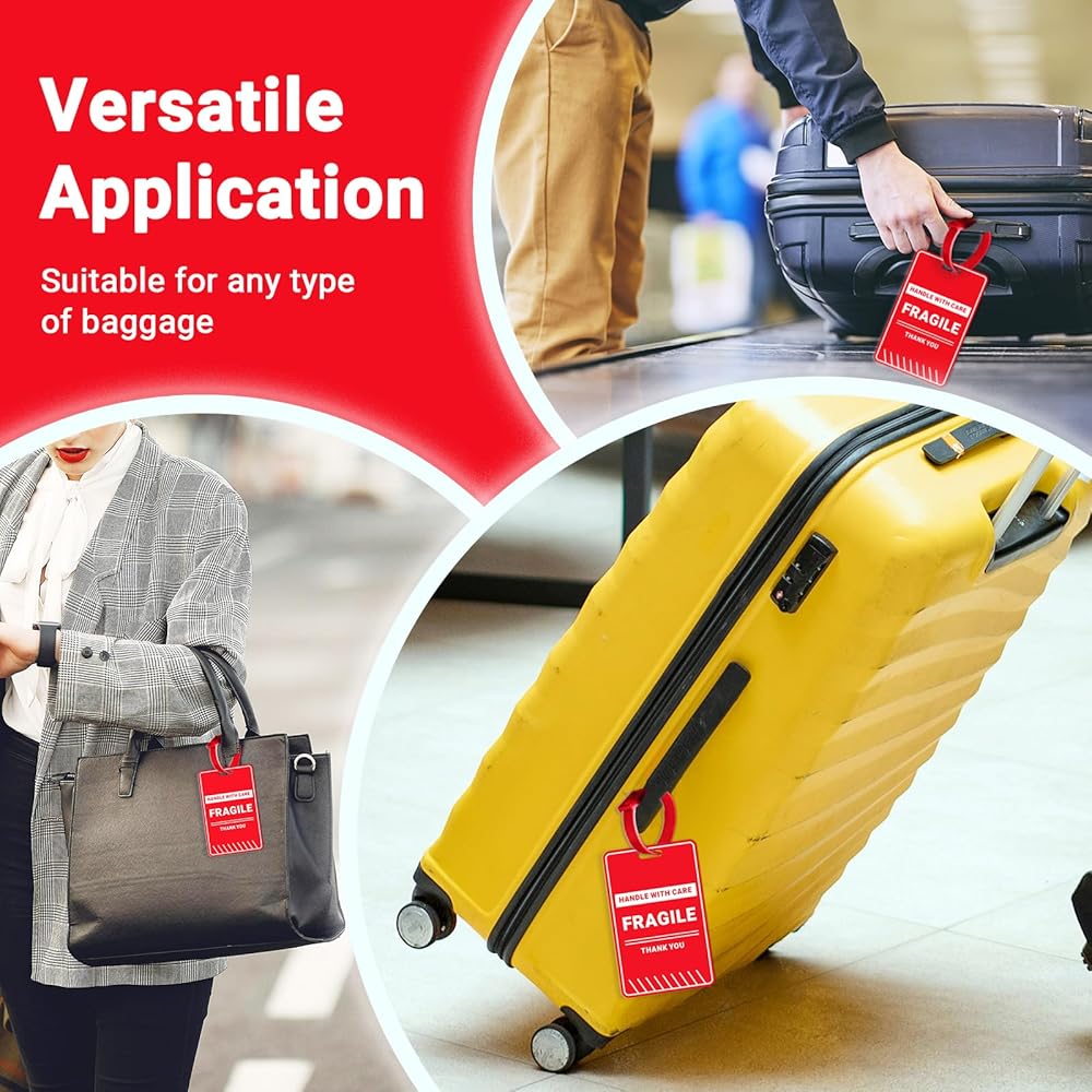 تنبيه واضح: كل بطاقة مطبوعة بالتنبيه الأساسي: "هشة - تعامل بعناية - شكرًا لك"، مما يضمن أن موظفي النقل يمكنهم التعرف على أمتعتك ومعالجتها بشكل مناسب. تساعد هذه الرسالة الواضحة على تقليل مخاطر سوء التعامل أو التلف.