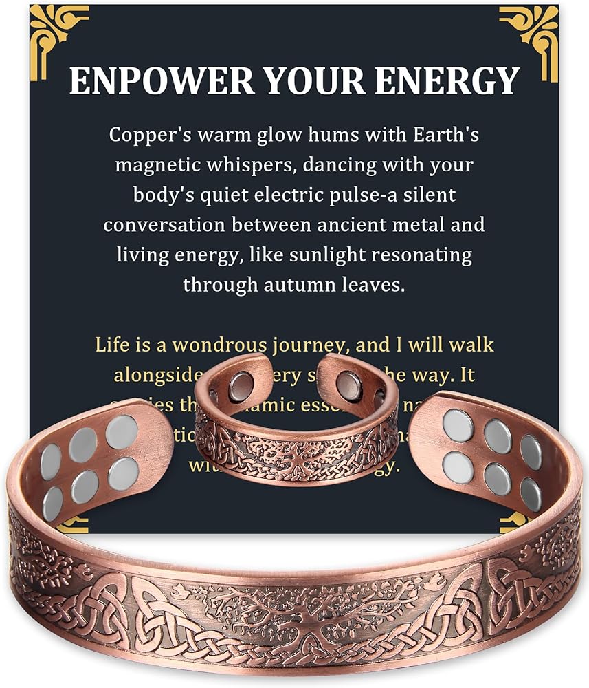 High Quality:Well Crafted Magnetic Bracelet For Men And Women, Made With High-Quality Copper, Lead & Nickel Free, Scratches Resistant. Bring You The Best Experience With The Best Quality!Suitable For Many Occasions:Our Magnetic Bracelet Is Suitable For Many Occasions. Wearing It, You Are The Most Eye-Catching In The Audience, And Everyone Will Be Attracted To You! So Fashionable That No One Doubts It Is A Magnetic Bracelet!Adjustable Size:Thanks To The Adjustable Design, Our Copper Bracelet Fits Most Men's or Women's Hands. You Can Adjust The Size Of The Bracelet Directly With Your Hand, Which Is Very Convenient. It Looks So Stylish! The Elegant And Minimalist Design Complements Every Outfit And Can Be Worn At Any Occasion.How To Clean The Magnetic Copper Bracelet?It Is Natural For Copper To Change Its Color And Leave Green Deposits On The Skin. This Happens When The Copper Reacts With Water Or Air, By The Process Called Oxidization, And This Is A Natural Process. The Green Deposits On The Skin Can Be Easily Washed Off With Soap and Water.Soak The Bracelet In A Mix Of Water Lemon Juice Or Vinegar. Rinse The Bracelet With Warm Water And Dry Thoroughly With A Soft Cloth. Apply Tomato Ketchup On The Bracelet. Rinse With Warm Water And Dry Thoroughly With A Soft Cloth.Warning!! This product is NOT a substitute for proper medical care. DO NOT use the product if you: have a pacemaker, defibrillator, insulin pump, or any other implanted electro-medical device, or are pregnant.