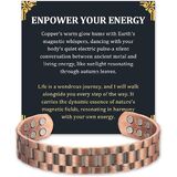 [Flexible Size]: The open-end design allows effortless adjustment, making this copper magnetic bracelet suitable for all wrist sizes. Customize the fit by gently pulling or pressing the ends. Dimensions: Length - 7.3" (18.5cm), Width - 0.59" (1.5cm).
