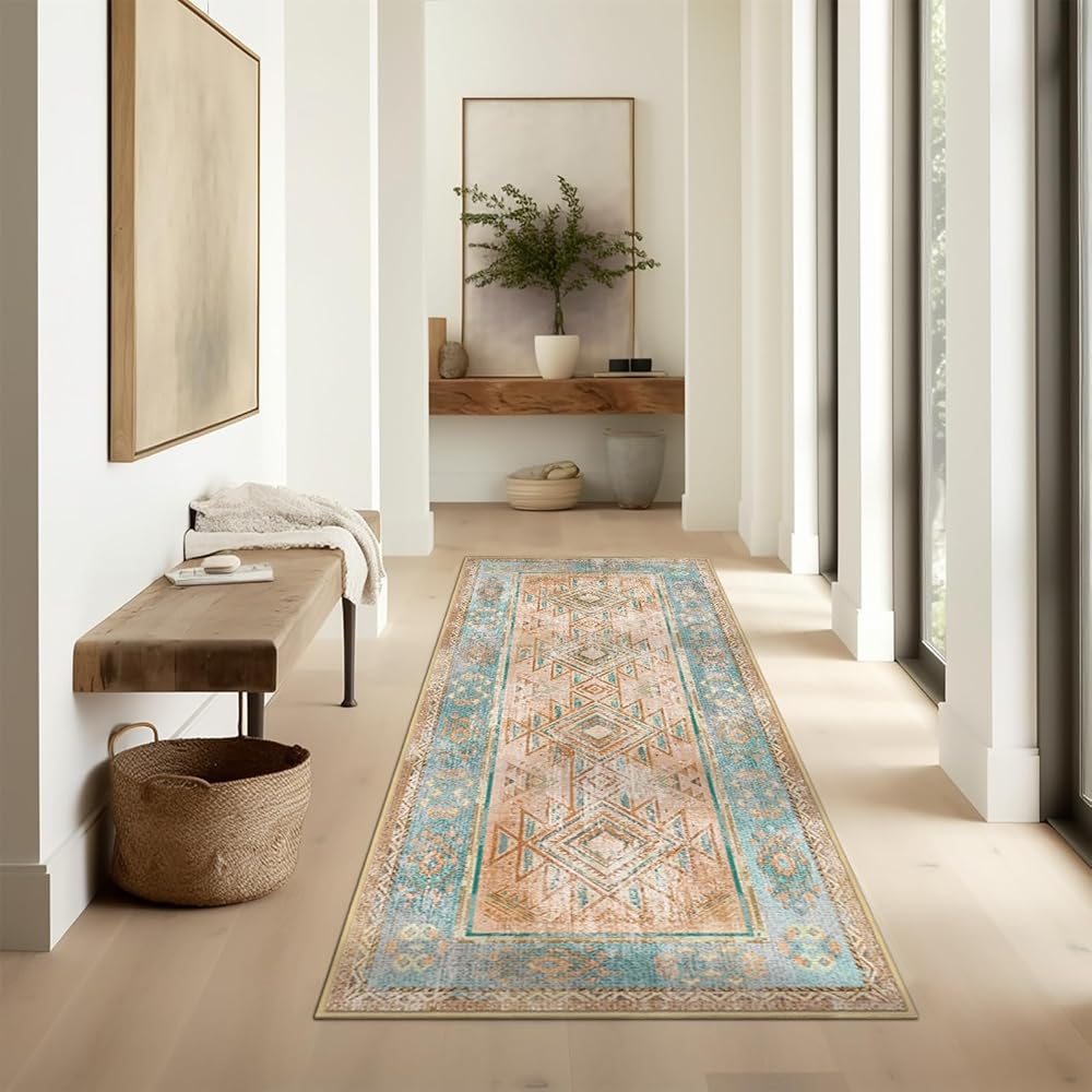【خامة ممتازة】تتميز سجادتنا العتيقة بألياف متينة، وهي الأفضل لسجاد غرفة المعيشة أو غرف الطعام أو أي مناطق ذات حركة مرور عالية. سمك متوسط، كسجادة مدخل، لن يعيق المدخل