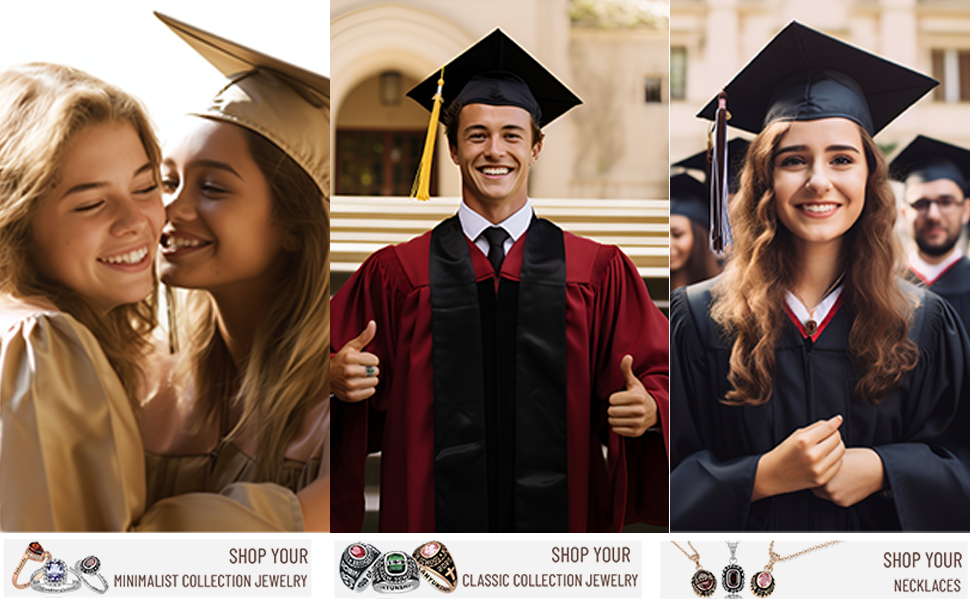 [يتضمن القلادة، ومسامير الأذن، وصندوق هدايا حريري]: نشكرك بشدة على اختيار منتجنا، ولتقديرك، سنرسل لك قلادة وزوجًا من أزرار الأذن الرقيقة معًا. القلادة على شكل قبعة التخرج مع الدبلومة. بالإضافة إلى ذلك، يتم تعبئة كل خاتم صفي في صندوق هدايا حريري رائع.
