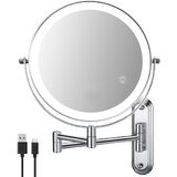 Flexible Positioning & Premium Build for Effortless Use:Designed for ultimate convenience, this mirror features a height-adjustable, extendable arm with multiple joints for 360° positioning, allowing you to easily adjust the angle and distance for makeup, shaving, or contact lens application—then fold it flat against the wall to save space. Crafted from durable metal with rust-resistant electroplating, it withstands moisture and daily use while maintaining a sleek look.