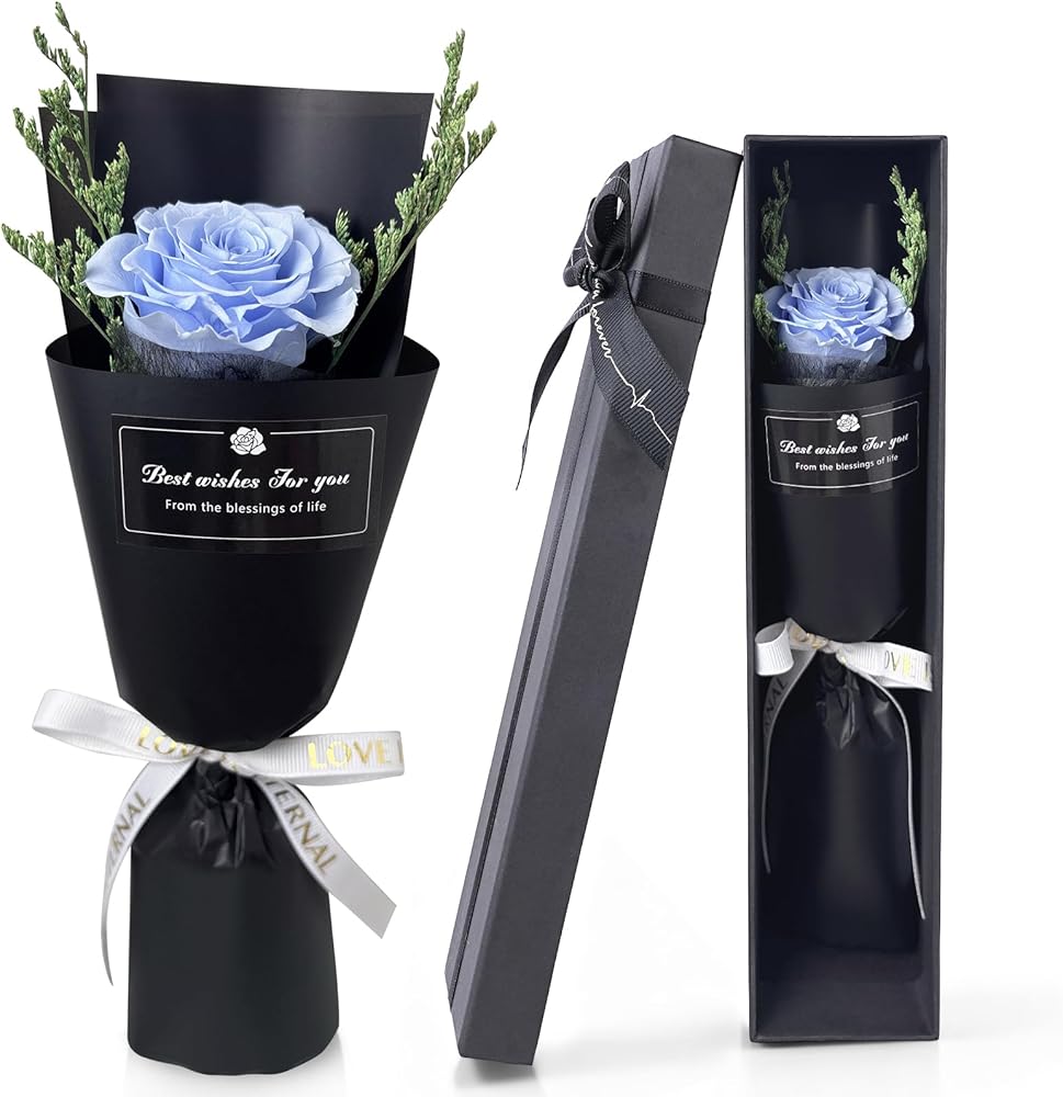 【جمال دائم وجودة ممتازة】الورد الخاص بنا مصنوع من وردة حقيقية بنسبة 100%، ويتم الحفاظ عليه باستخدام تكنولوجيا متقدمة للحفاظ على نعومته الطبيعية ولونه النابض بالحياة لسنوات قادمة. لا حاجة للري، فقط أناقة لا نهاية لها. تأتي في صندوق هدايا قوي وفاخر، وجاهزة لإبهار الجميع.