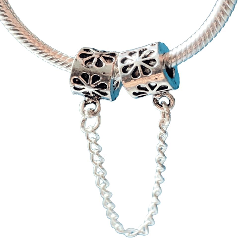 The safety chain hole size is about 4.5mm~5mm. Compatible with most charm bracelets including Pandora, Biagi, Baci, Chamilia Bracelets.