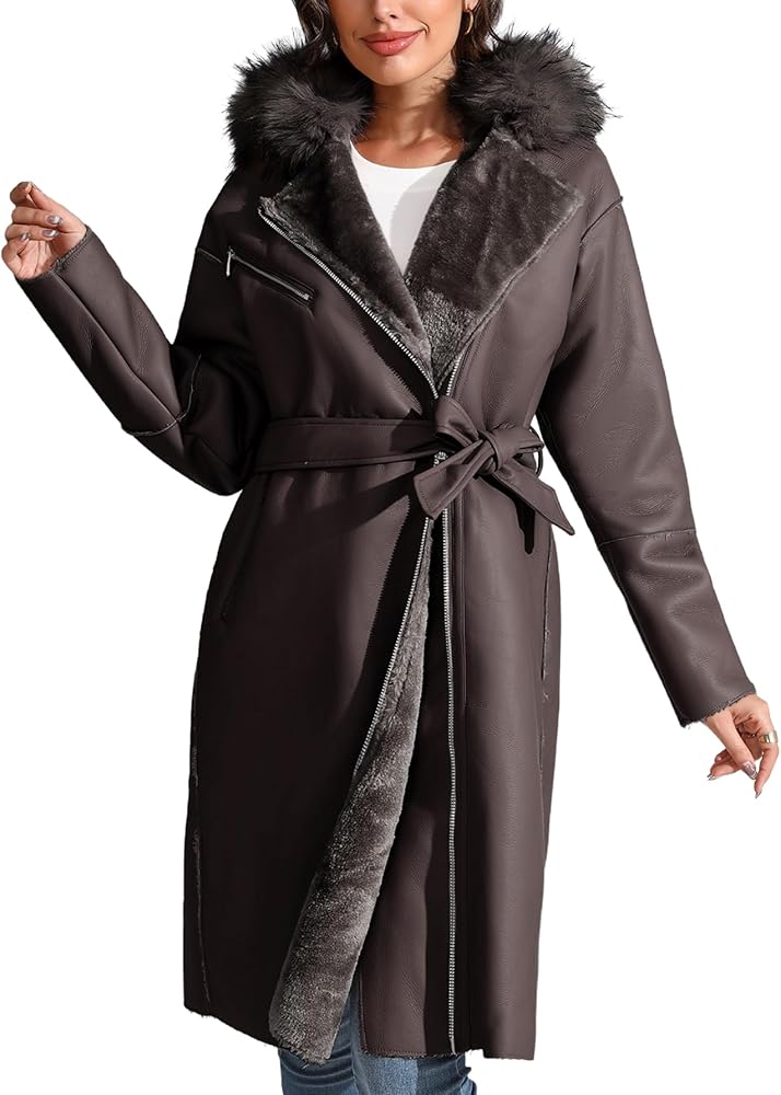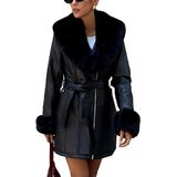 معطف واق من المطر أنيق من الجلد الصناعي مع غطاء رأس مريح من الفرو الصناعي: يجمع هذا المعطف بطول الركبة بين الطراز الكلاسيكي والدفء الحديث. يضيف غطاء الفرو الصناعي لمسة فاخرة بينما يحميك من الرياح والبرد. مثالية للنزهات الشتوية، هذه القطعة من الملابس الخارجية تبقيك أنيقًا دون التضحية بالراحة. تم تصميم غطاء الرأس ليكون ناعمًا وخفيف الوزن، لتجنب ضخامة المعاطف الشتوية التقليدية.